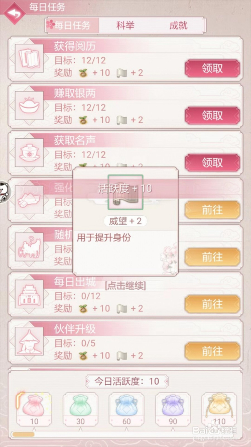 第六步:完当作的使命达到必然量也会获得活跃度奖励。
