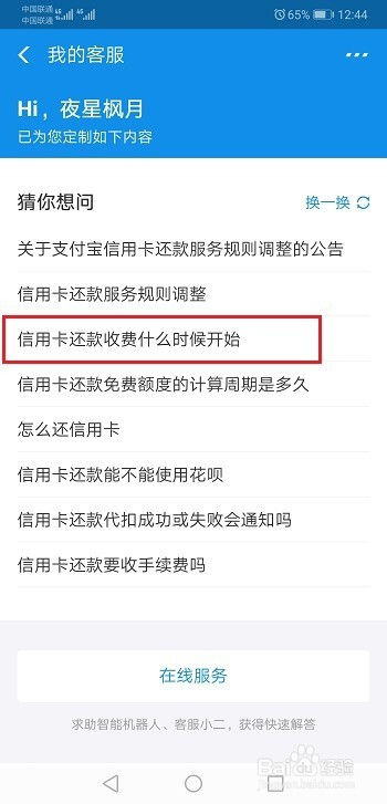 第四步进去之后,点击“信用卡还条目收费什么时辰起头”,如下图所示: