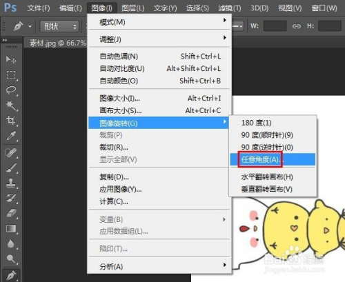第四步:若是需要扭转的不是90度或者180度,可以在菜单栏中选择“图像--图像扭转--肆意角度”。