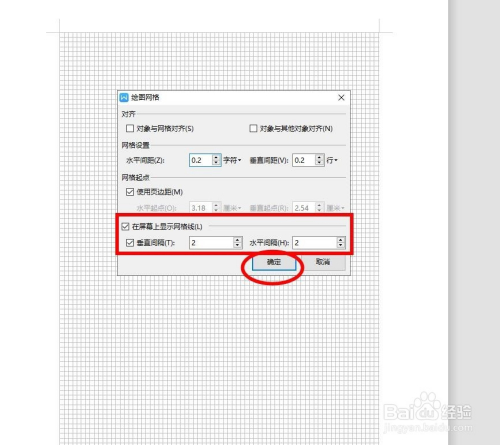 在弹出的“画图网格”对话框中的“屏幕上显示网格线”功能区可以进行“垂直距离”和“程度距离”的设置