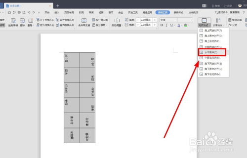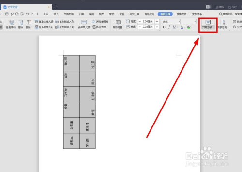 全选表格,在“表格东西”选项卡找到"对齐体例"功能按钮单击