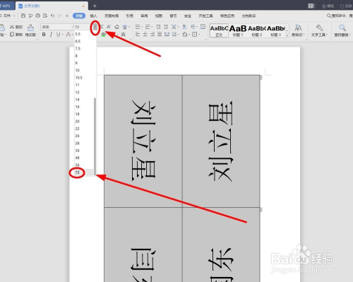选中姓名,回到“起头”选项卡,单击“字号”后面的下拉按钮,来增大字体到合适大小