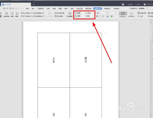 在“表格属性”功能区的“高度”和“宽度”数值框平分别输入“12厘米”“7.08厘米”