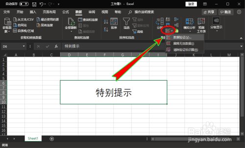 在“数据”的下拉菜单中找到“数据东西”选项组,在该选项组继续找到“数据验证”子菜单项。