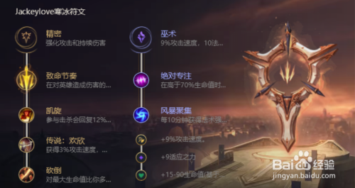 首先介绍她的符文,首先是慎密系的致命节拍,然后就是巫术的绝对专注,如图所示。