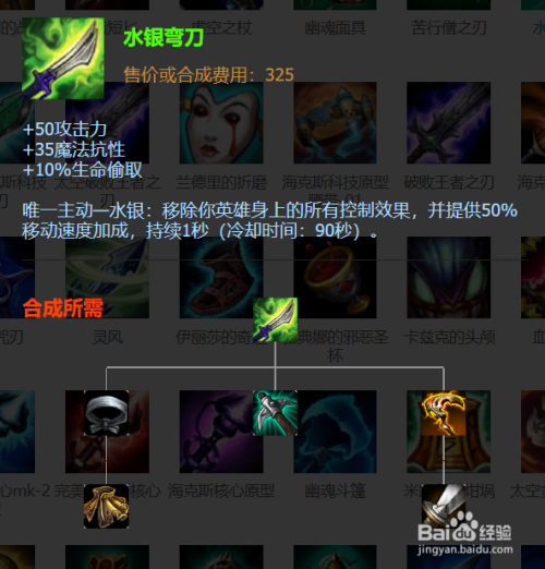 到了后期,也可以不出吸蓝刀的,把它换当作新生甲或者若是对面有节制的,就换当作水银弯刀解节制,如图所示。