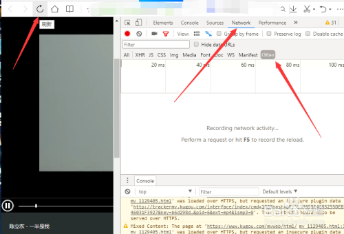 这时大师在弹出的网页代码中选择【network】和【other】,再刷新mv视频页面
