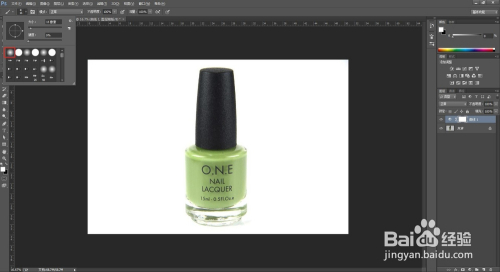 这里可以选用画笔东西,选用柔边圆将黑色瓶盖上的细节涂抹回来。