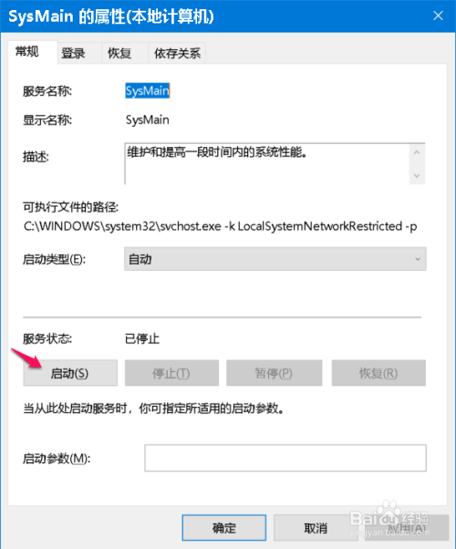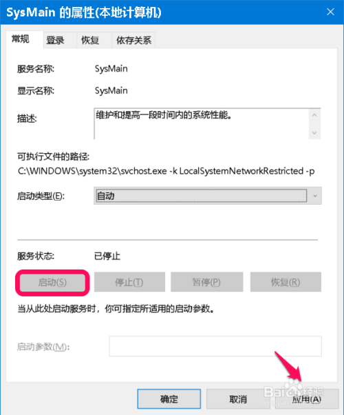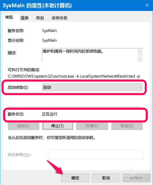 SysMain 的启动类型为:主动