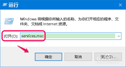 在运行对话框中输入:services.msc 号令,点击确定或按下键盘上的回车键,打开办事窗口;