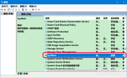SysMain 的办事状况为:正在运行