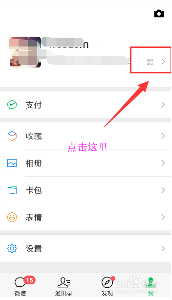 在我的页面,点击微信头像右边的二维码的选项,如图所示