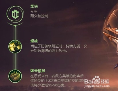 选择“果断”作为副系符文(经久和节制)在副系符文1里选择“爆破”,加速拆塔速度;在副系符文2中选择”骸骨镀层“,削减敌方上单英雄的输出。