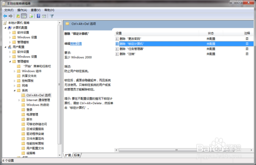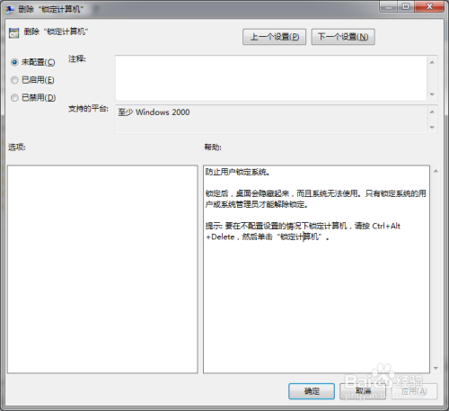 删除Ctrl+Alt+Del页面中的锁定计较机,可以防止用户锁定计较机。当然若是您利用【Windows】+【R】快捷键,仍然可以完当作锁定计较机的操作。