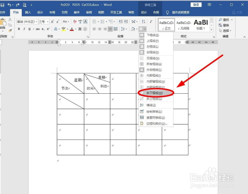 第一种:单斜线表头。选中方针单位格,找到“起头”选项卡中的“边框”按钮后面的下拉箭头单击