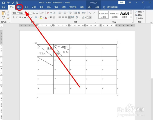 第二种:双斜线表头的建造。选中方针单位格,找到菜单栏“插入”单击