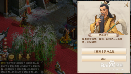 点击茅山道士后起头破阵,贴符,我们第一四行贴2345,第二三行贴1,破阵当作功。之后我们再点击茅山道士获得钥匙。
