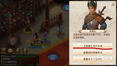首先,我们登岸问道去天墉城官府找到李捕头,领取使命,这周的为天外之谜,我们获得卷轴等。