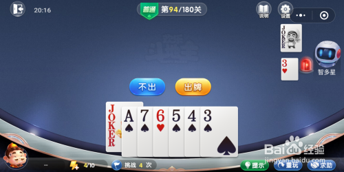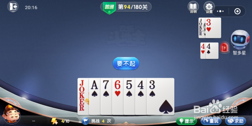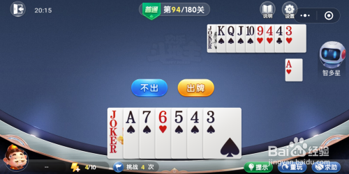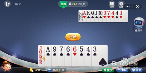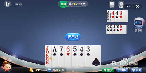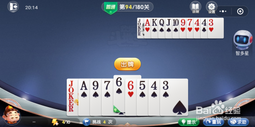 打开欢喜斗地主残局闯关第94关,起头闯关。