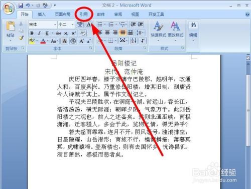 找到菜单栏“引用”选项卡单击