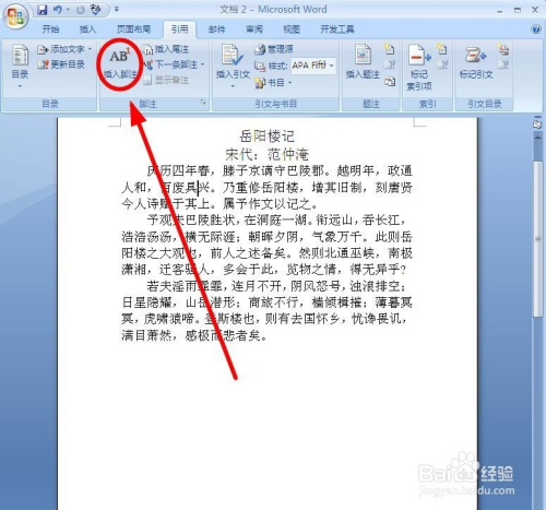 打开要添加脚注的文档