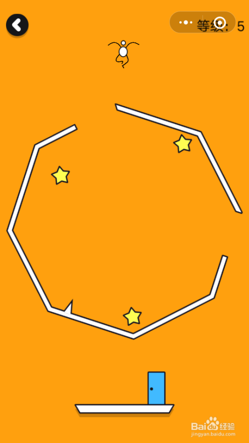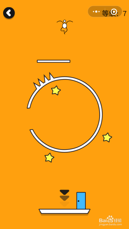 第五关火柴人进入进口时要小心避免碰着尖刺,否则通关会掉败,奔驰之后获取星星