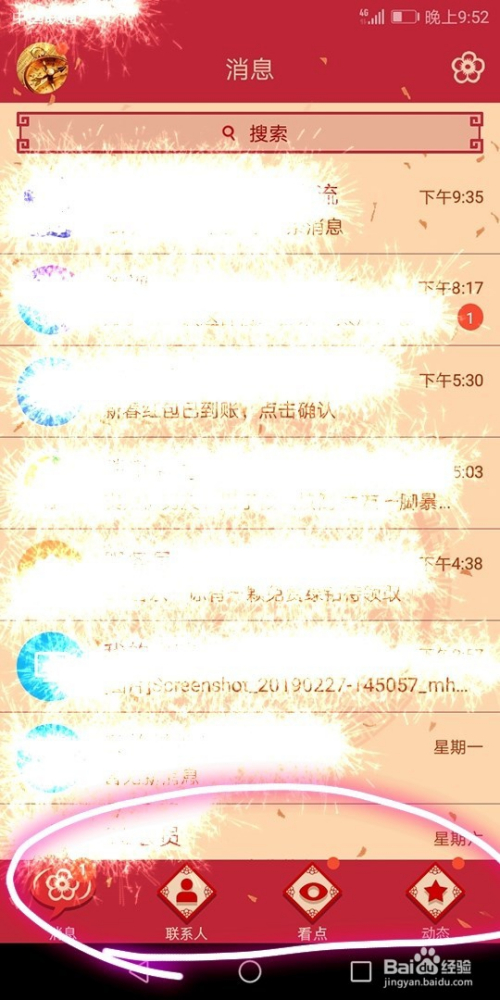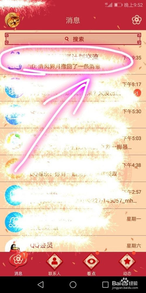 打开并登录手机QQ,在打开页面中可以看到该应用的组成模块及近期的聊天内容;
