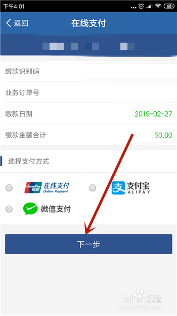 接下来就是选择好付出体例,选择好后点击【下一步】。