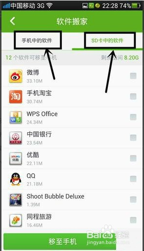 因为您的手机内存中安装的软件过多,导致的手机内存不敷用,您可以利用软件助手搬场功能将手机内存中的软件搬场到SD卡,搬场今后就可以很好的预留出手机内存来撑持游戏的运行了。