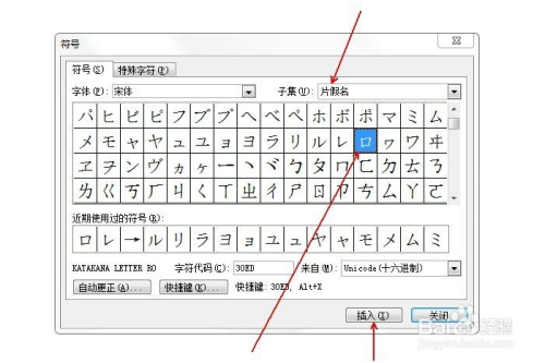 在“子集”中选择“片化名”,并鄙人方选中片化名ロ,点击“插入”。
