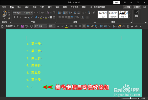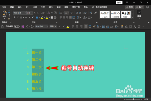 选择好编号样式后,返回到文档中就可以发现原本没有持续的编号此刻都主动持续起来了。