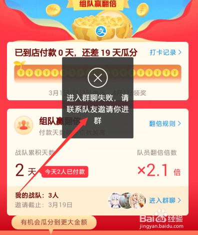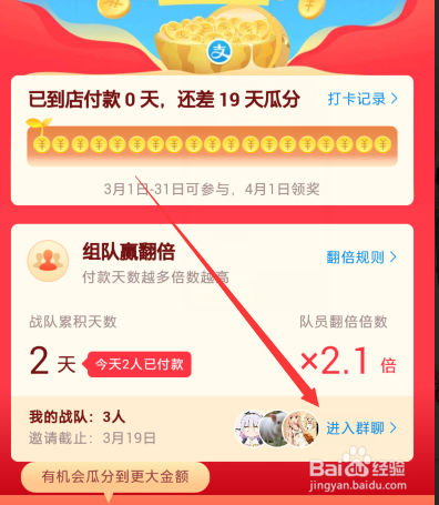 有的伴侣可能插手了支付宝到店支付19天瓜分9亿红包活动的战队,想查看哪些人插手了战队,那么今天教大师怎么查看支付宝瓜分9亿战队人员名单
