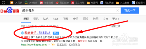 酷狗音乐网页版,看带有“官网”的再点入,搜刮你想要的歌曲播放它