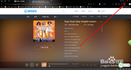 看到右上角那个箭头按钮了吗?没错就是它!然后回到搜刮引擎的首页,好比百度,搜刮:酷狗音乐