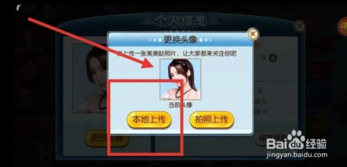 第四步,点击更改头像后,有2种方式换头像【当地上传】和【摄影上传】,我们选择点击【当地上传】,具体如下图