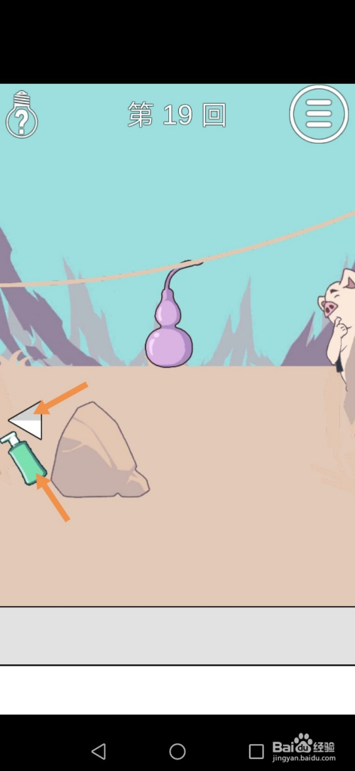 在右边,点击大石头,接着点击大石头左边的卸妆水,然后点击标的目的左箭头到左边去。