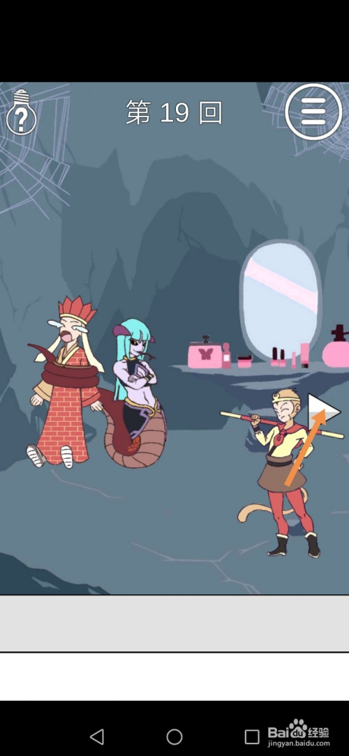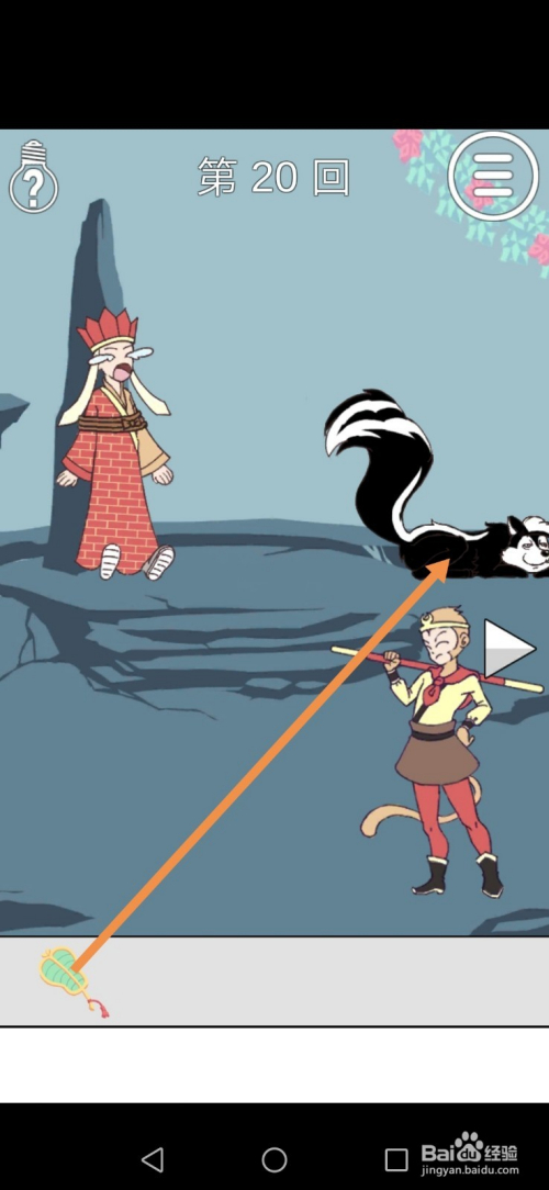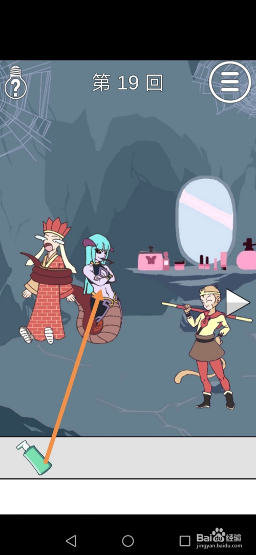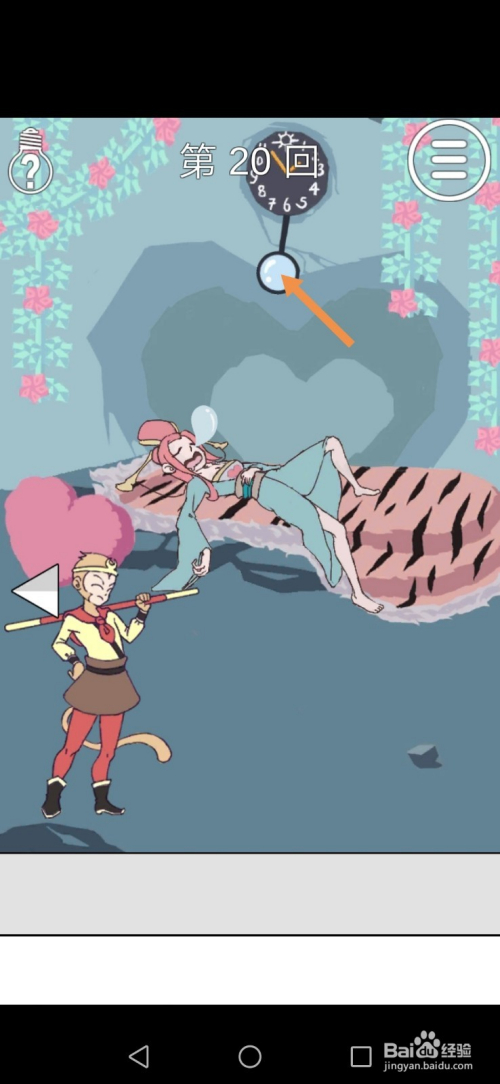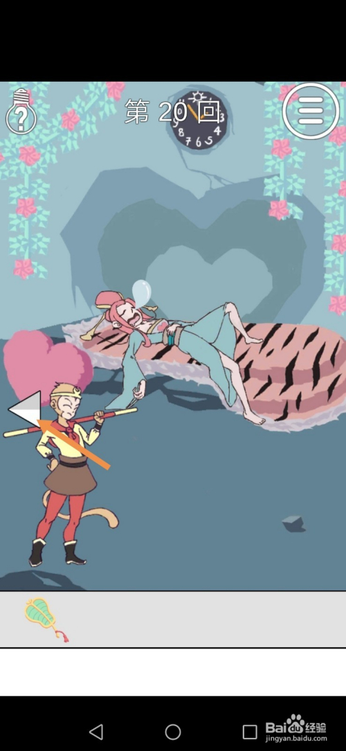 点击魔鬼嘴里的扇子,然后点击标的目的左箭头到左边去。