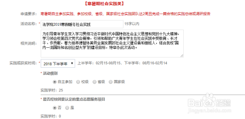 接下来是申请实践的时候,同一填写2018下半学年。剩下的几个处所连结默认即可。
