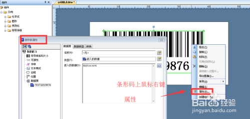 在条码上双击鼠标或者点击鼠标右键选择属性,进入到条形码的属性中。