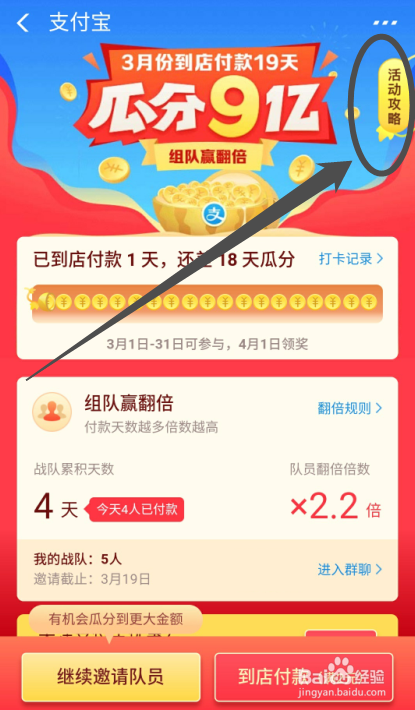 支付宝瓜分9亿现金红包活动本家儿要就是经由过程支付打卡的形式获得红包奖励,只要在3月份累计打卡跨越19天就可以达标,别的还可以插手战队获得翻倍倍数。下面介绍支付宝瓜分9亿现金红包活动攻略: