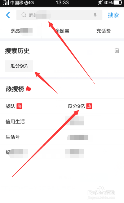 大师先打开支付宝顶端的搜索框并点击【瓜分9亿】,没有找到的话可以本身搜刮