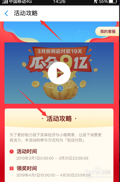 最后大师就可以看到十分具体的支付宝到店付条目19天瓜分9亿红包活动攻略
