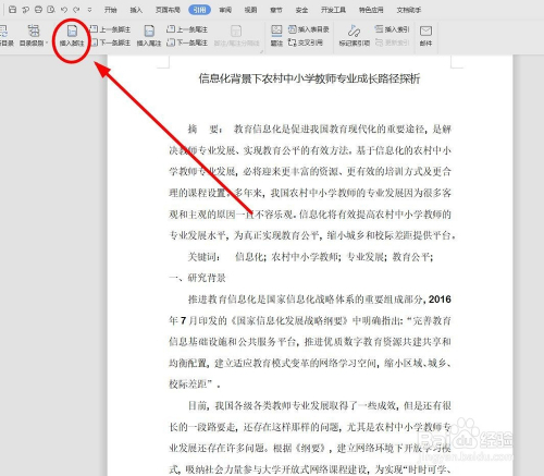 把光标定位在要添加脚注的位置
