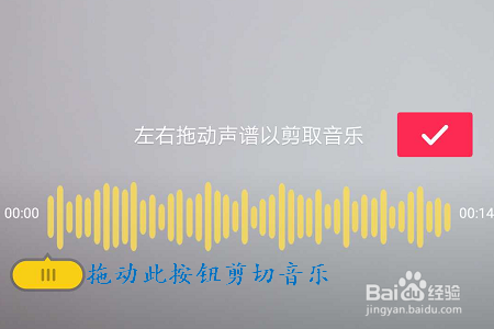 不外系统是撑持布景音乐剪切的,也就是说若是想要对原音乐做一些改动,那么点击拍摄界面右侧的“剪音乐”,然后在剪切页面下方拖动声谱进行剪切即可,其他的功能,好比添加道具、美化就和正常拍摄视频一样了;