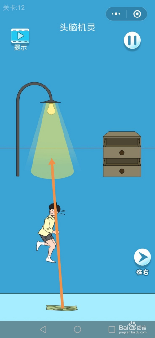 第12关先点击抽屉,抽屉打开后,点击抽屉里的灯胆,然后点击标的目的右箭头进入右边的房间。