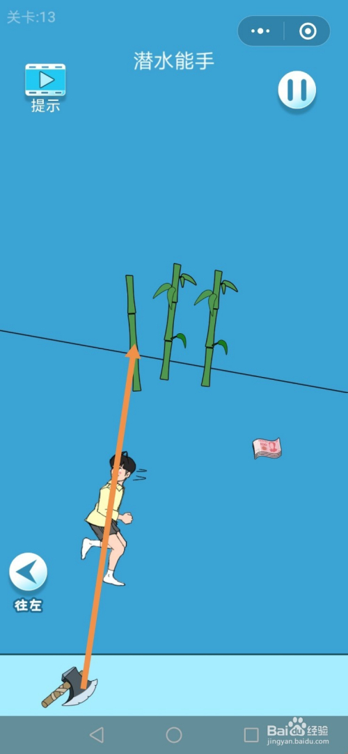 第13关先点击斧头,然后点击标的目的右箭头进入右边的房间。