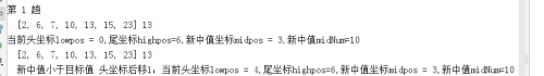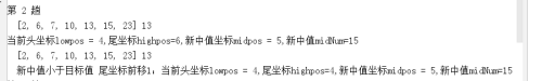 当前头坐标lowpos = 4,从头至尾坐标highpos=6,新中值坐标midpos = 5,新中值midNum=15