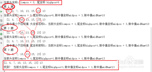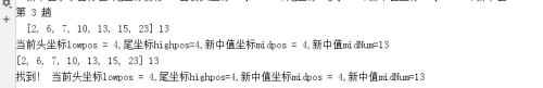 找到! 当前头坐标lowpos = 4,从头至尾坐标highpos=4,新中值坐标midpos = 4,新中值midNum=13