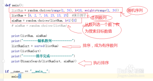 listNum = random.choices(range(1, 34), k=10, weights=range(1, 34))listNum = [6, 2, 7, 10, 23, 13, 15] #演示例子aimNum = random.choices(listNum, k=1)[0]# aimNum = random.choices(listNum)print(listNum, aimNum)print("--------随机数列-----------")listNumSort = sorted(listNum)print(listNumSort)print("-------排序完当作------------")print(BinarySearch(listNumSort, aimNum))