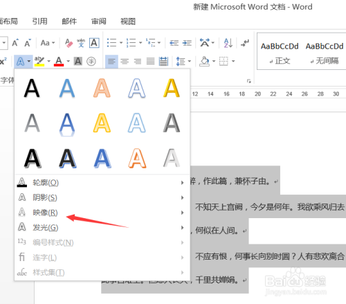 点击后,这时就会弹出文字的特效设置,在这里,我们选中映像,参考下图